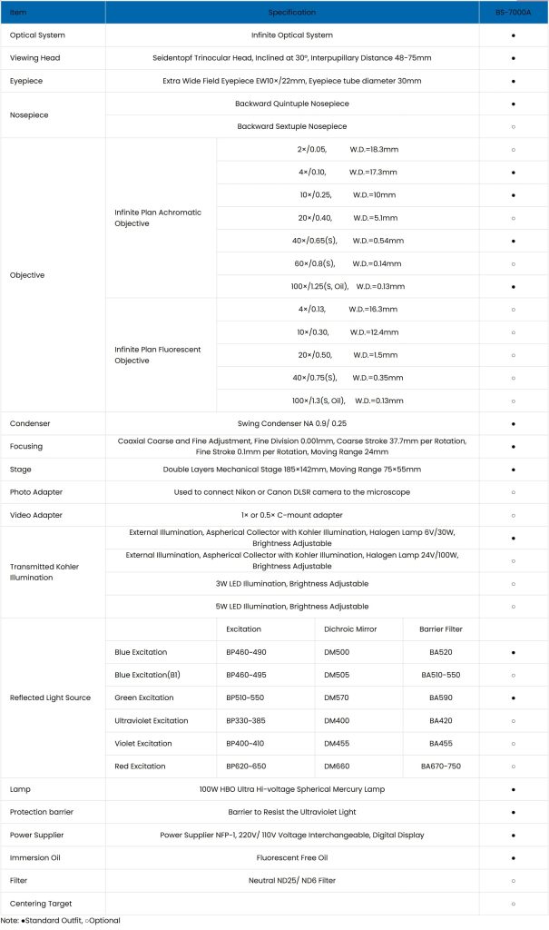 میکروسکوپ فلورسانس BS-7000A یک میکروسکوپ آزمایشگاهی فلورسانس با سیستم نوری بینهایت پیشرفته است.
